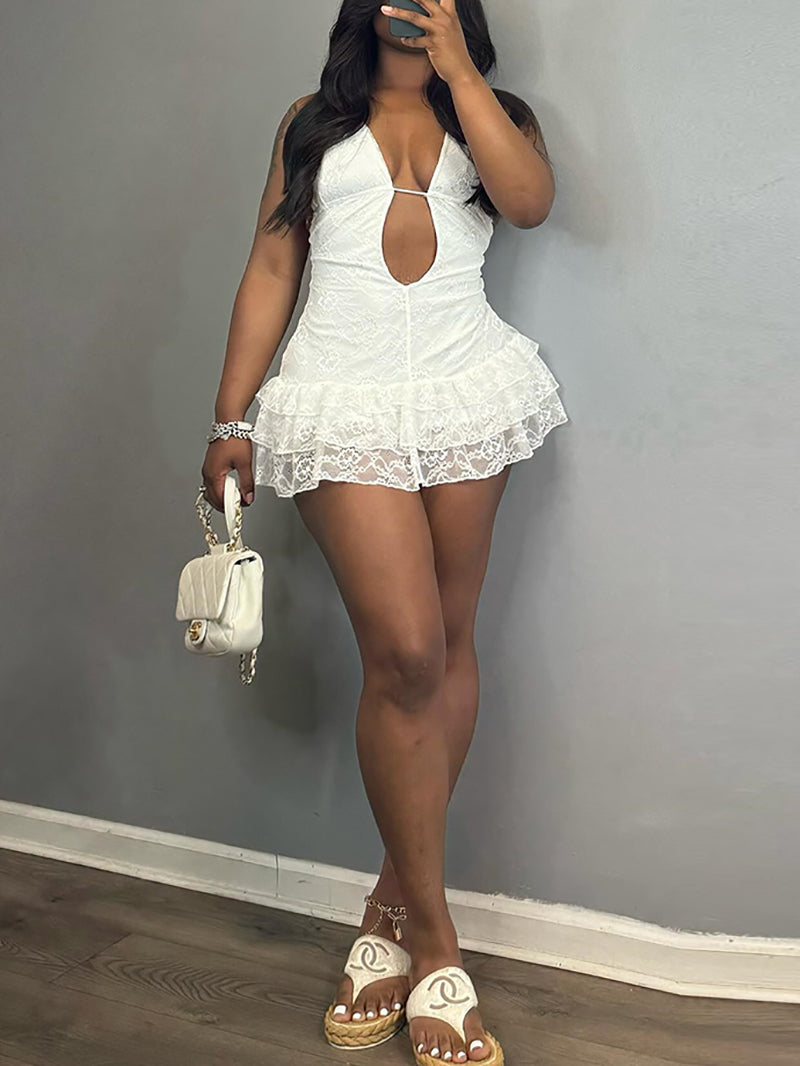 This Sexy Lace Hollow Out Ruffle Halter Mini Dress offers excellent value for its price. Designed with intricate lace and stylish ruffle details, it combines elegance and allure, making it a perfect choice for wholesale buyers seeking trendy, affordable fashion pieces.