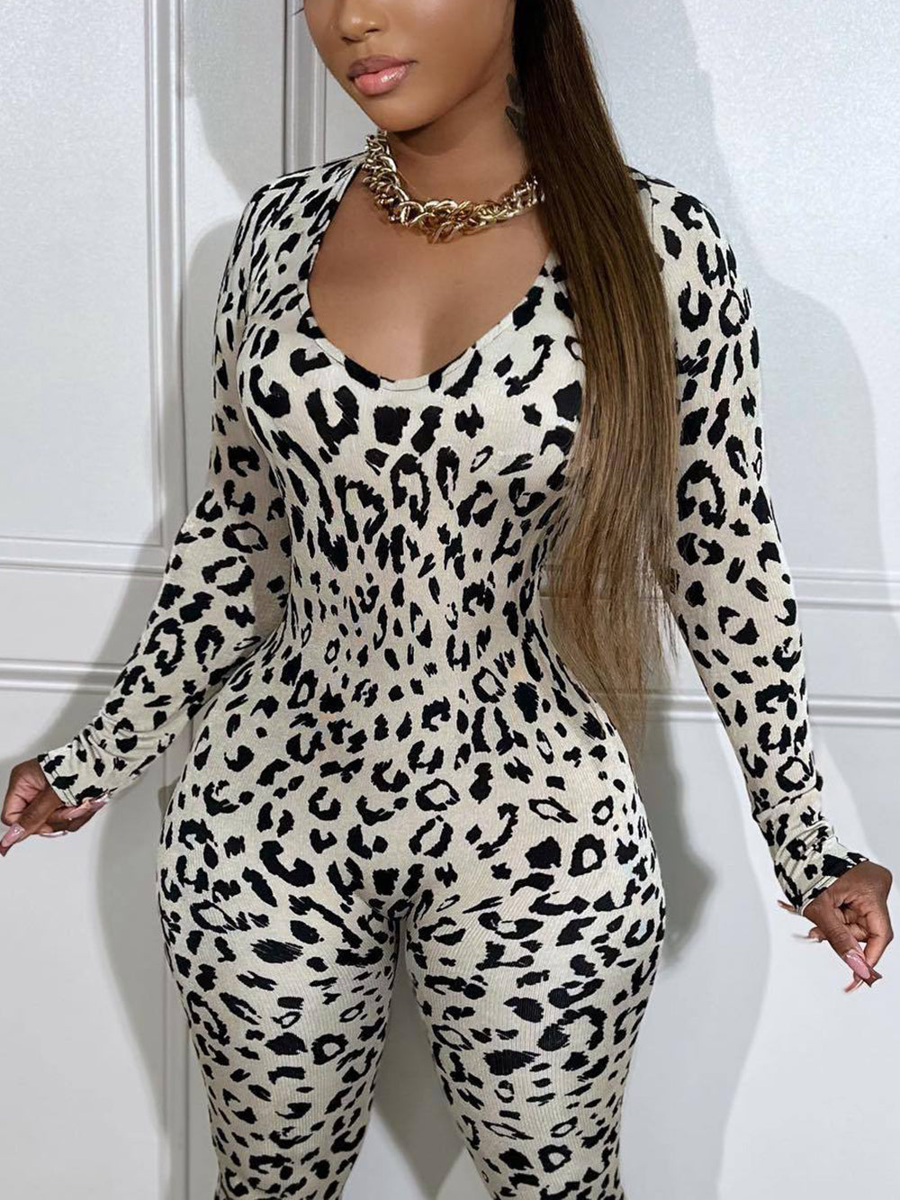 Unleash your wild side with our Sexy Leopard Print Backless Jumpsuit. Made with a fierce leopard print, this jumpsuit will make you feel confident and alluring. Its backless design adds a touch of seductiveness, perfect for a night out. Let your inner sexy shine with this stylish and bold jumpsuit.