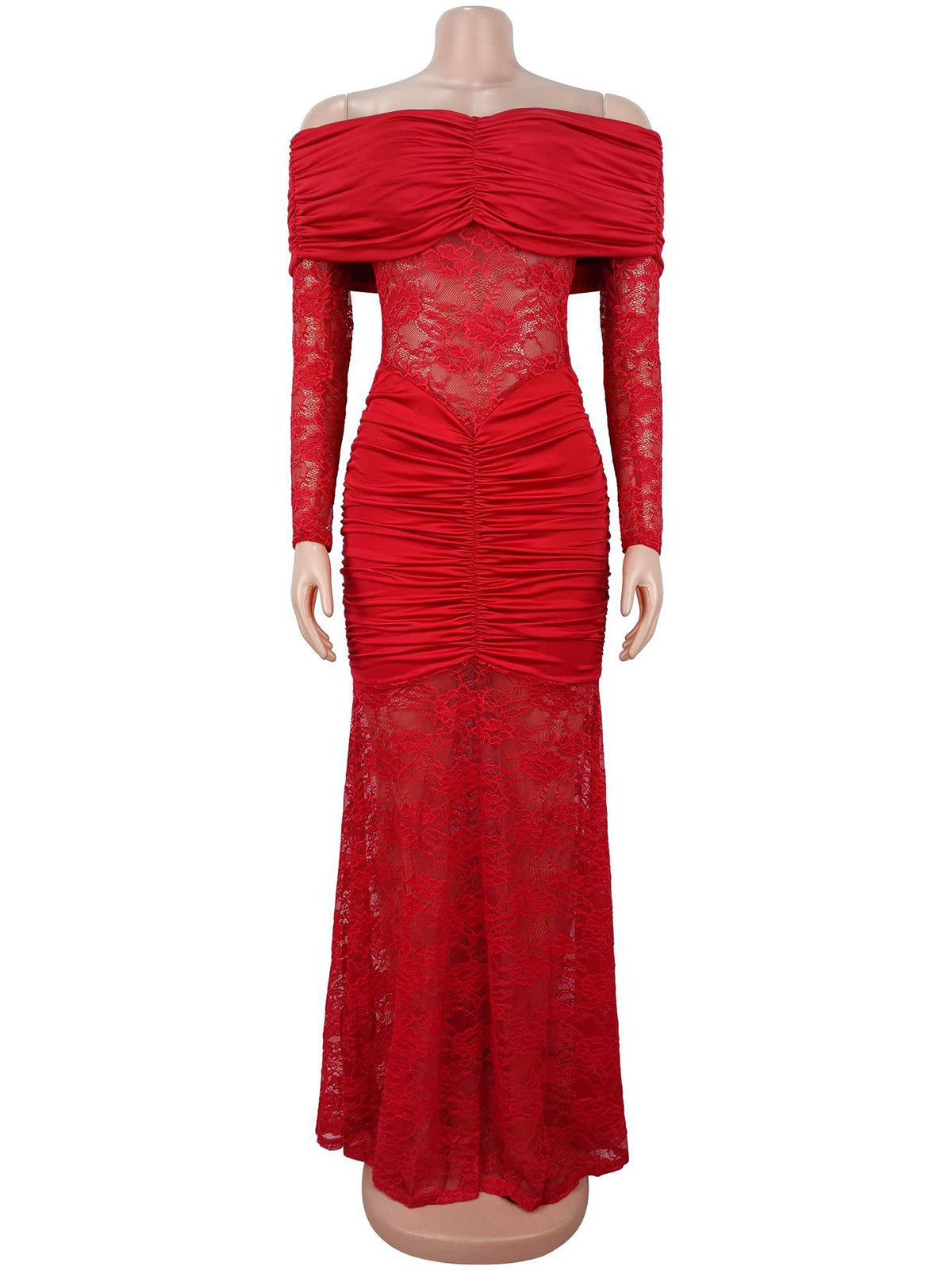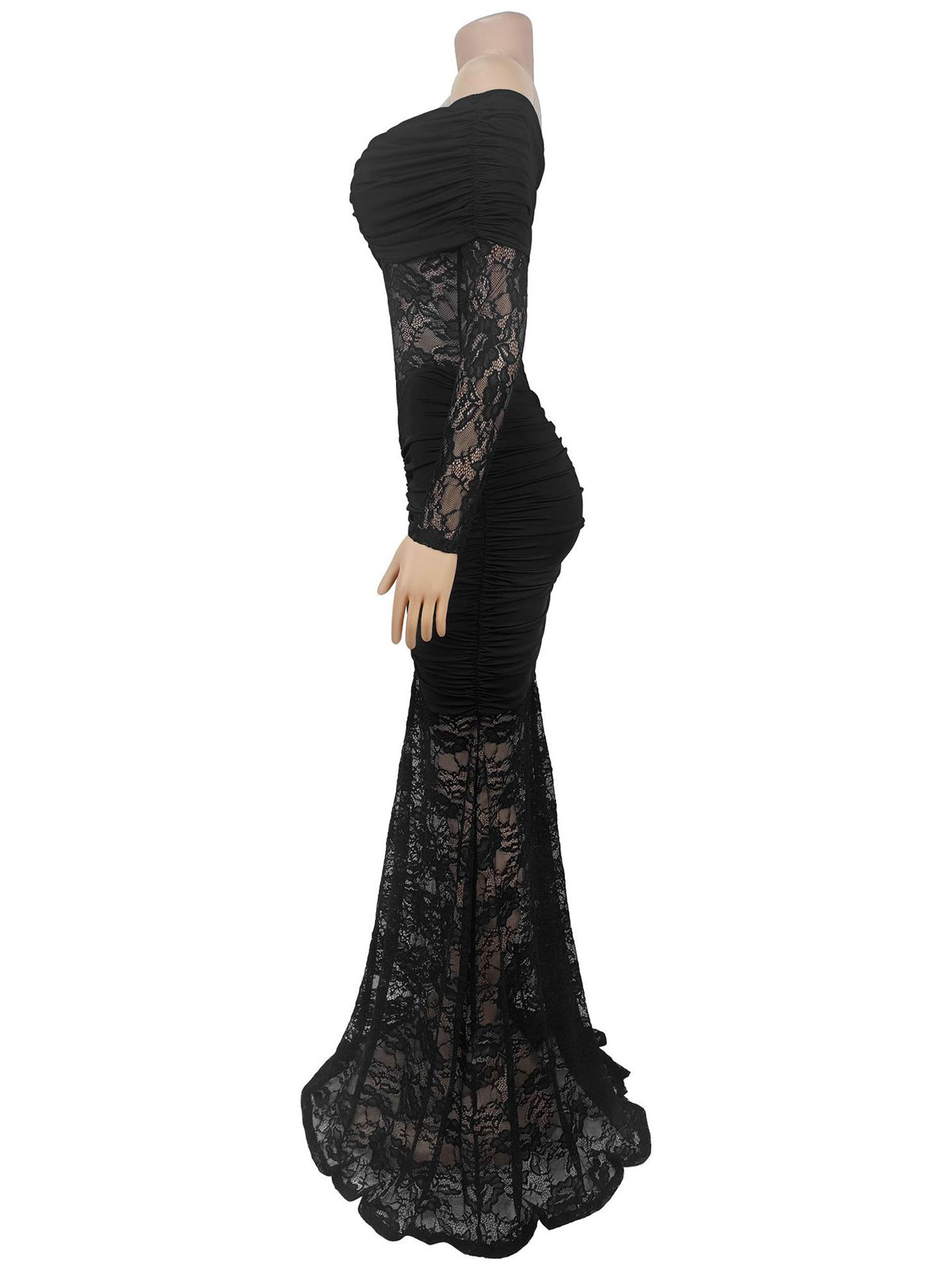 Elevate your inventory with this stunning off-shoulder maxi dress featuring sophisticated ruched detailing and elegant lace patchwork. The flattering silhouette combines modern design with timeless appeal, making it perfect for evening events, parties, and special occasions. Crafted with quality construction, this piece offers versatility for retailers seeking to attract fashion-forward customers. The off-shoulder neckline and strategic ruching create a refined, eye-catching look that appeals to diverse demographics. Ideal for wholesale buyers looking to stock statement pieces that deliver both style and wearability.