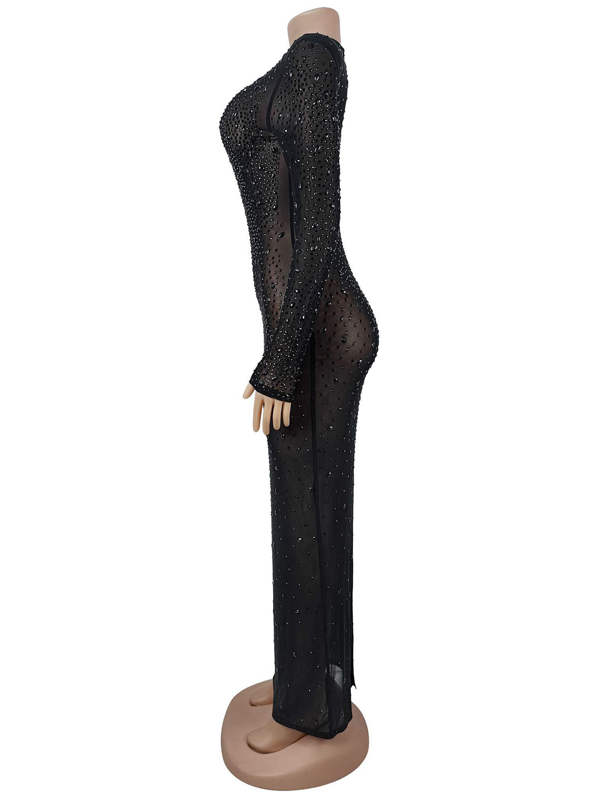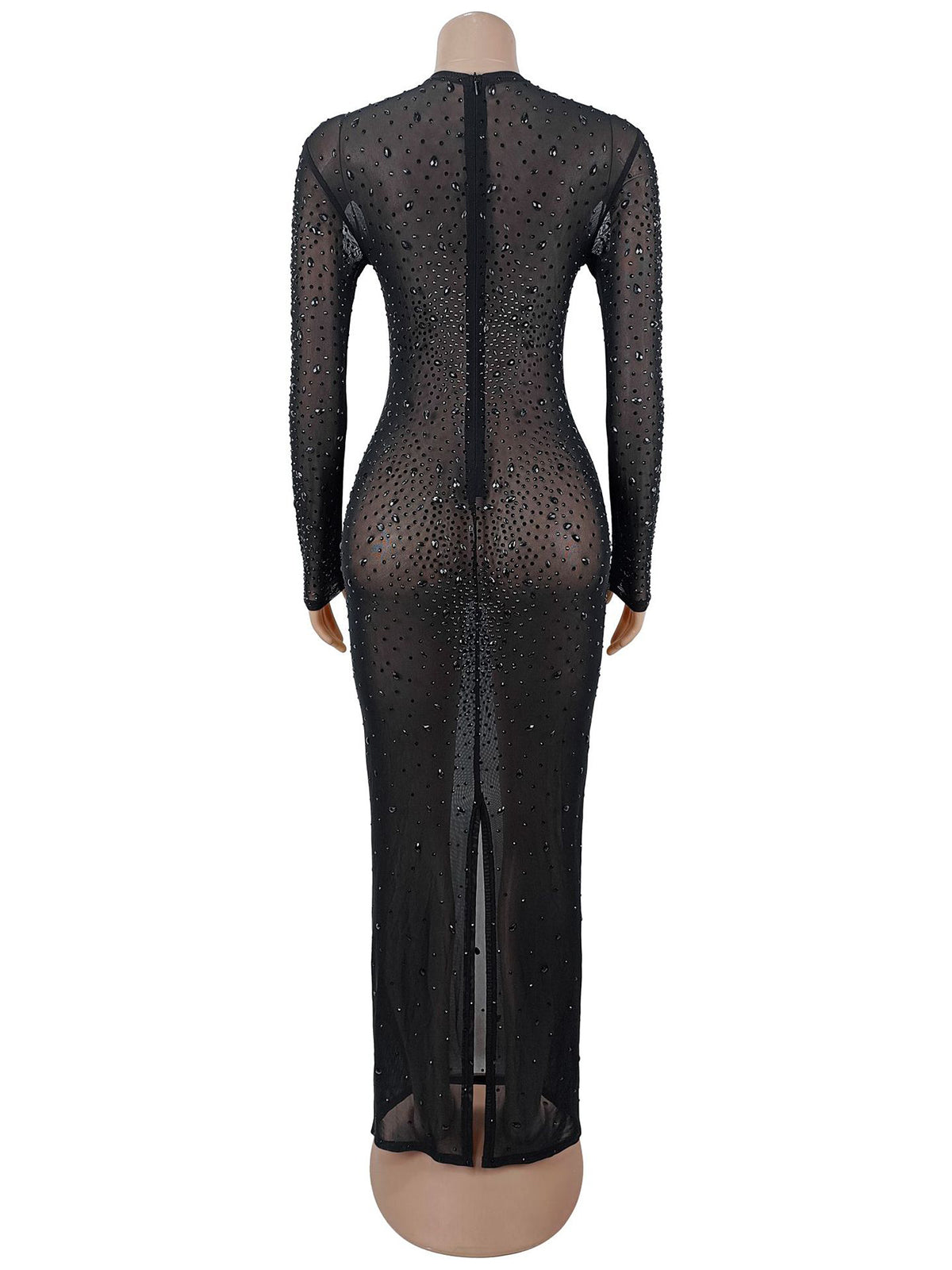 # Sexy Rhinestone Mesh Sheer Bodycon Dress This stunning bodycon dress combines sheer mesh panels with eye-catching rhinestone embellishments for a bold, glamorous look. The fitted silhouette hugs curves while the strategic mesh detailing adds modern edge and visual interest. Perfect for evening events, nightlife, or fashion-forward occasions, this piece delivers confidence and sophistication. The rhinestone accents catch light beautifully, ensuring you stand out. Ideal for wholesale buyers seeking trendy, statement-making pieces that appeal to style-conscious customers.