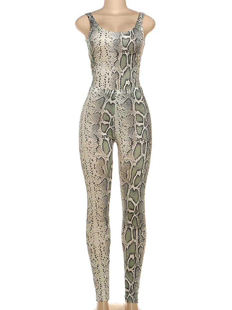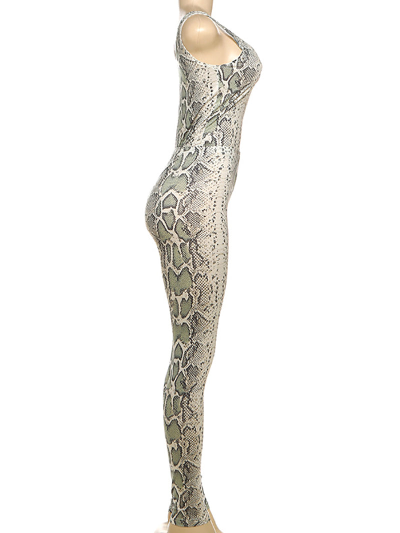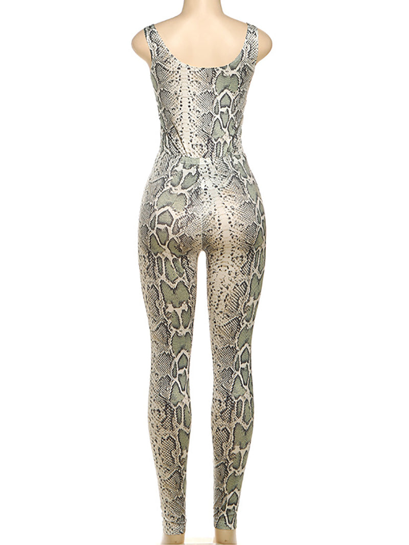 Sexy Snake Print Sleeveless Bodysuit Skinny Pant Set