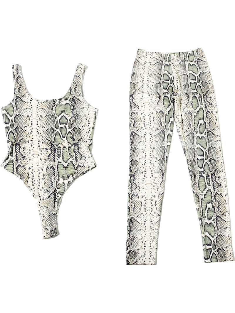 # Sexy Snake Print Sleeveless Bodysuit Skinny Pant Set Make a bold statement with this striking two-piece...