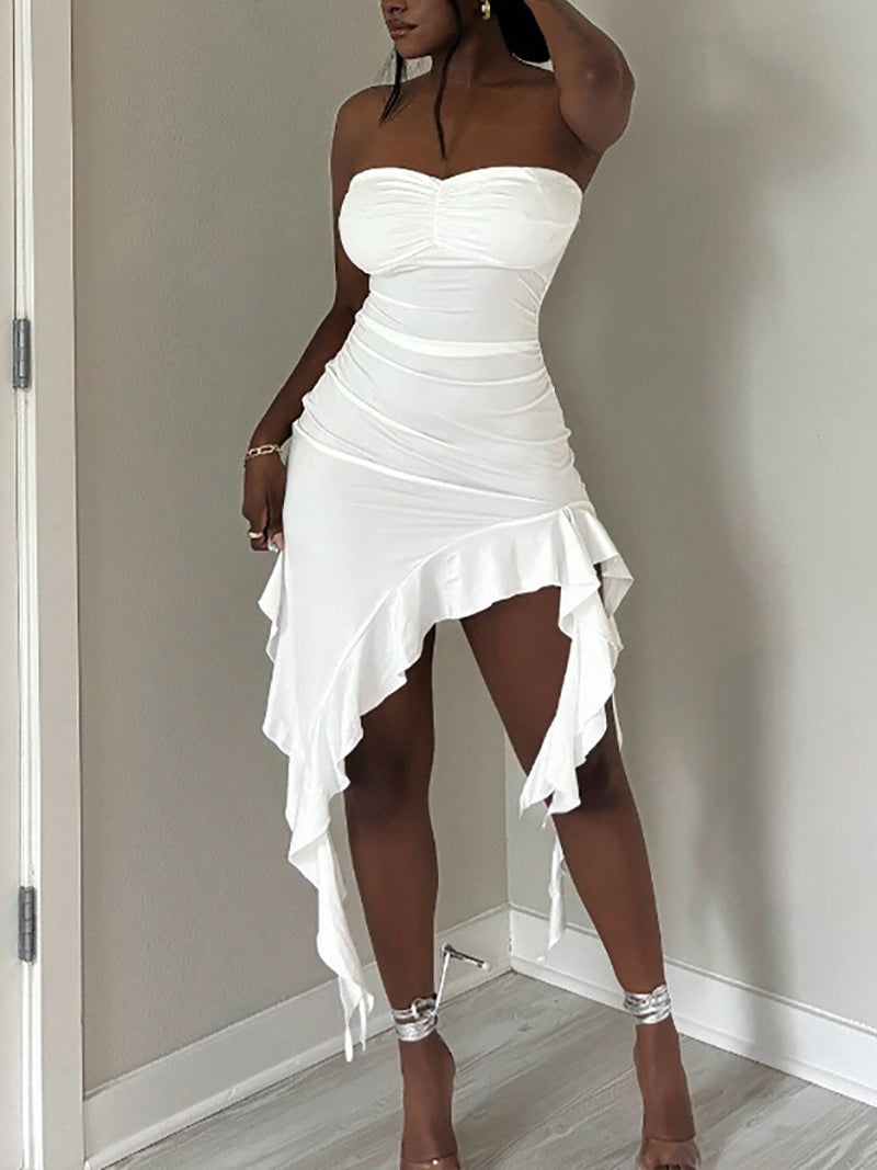 Sexy Strapless Ruffles Bodycon Midi Dress