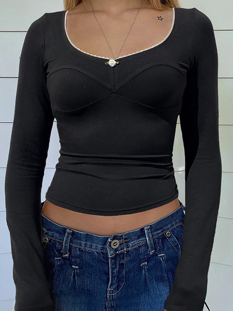 As a wholesaler, we present our Sexy U Neck Knit Crop T-shirt, featuring long sleeves for a...