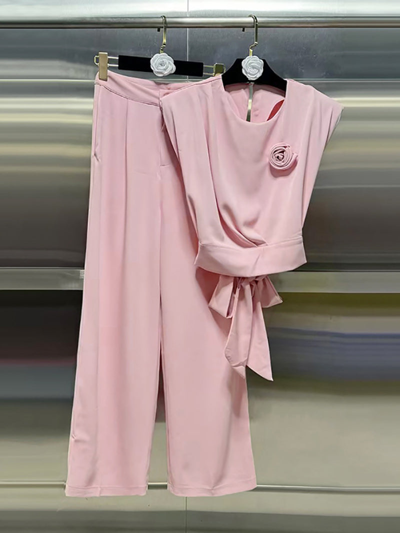 This set features a sleeveless spliced lace-up vest and high waist pants, offering a high value for money and potential for high profits. Perfect for wholesale buyers looking for affordable and stylish pieces.