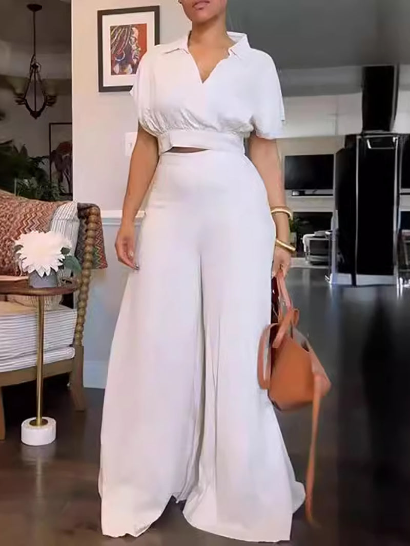 Highly demanded in the market and low return rate, this two piece set includes a pair of loose flare pants for a casual yet stylish look. Perfect for everyday wear, it offers both comfort and trendiness.