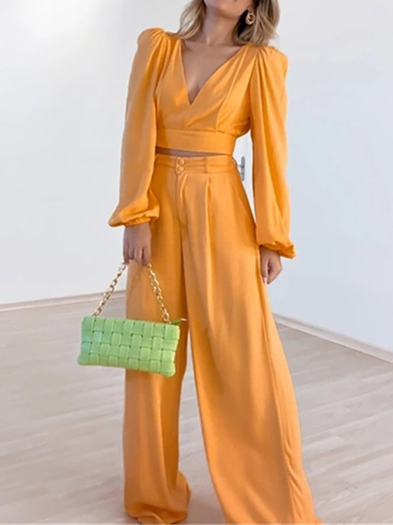 Perfect for a casual day out, this V Neck Shirt Wide leg Pants Set is both comfortable and stylish. The relaxed fit of the wide leg pants allows for easy movement, while the V neck shirt adds a touch of sophistication. A must-have for any wholesaler looking for trendy, versatile pieces.