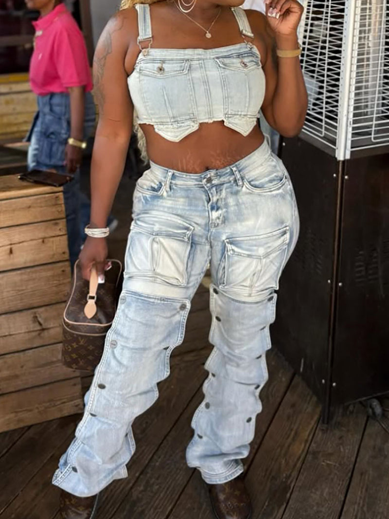 Vintage Denim Multi Pocket Cargo Jeans
