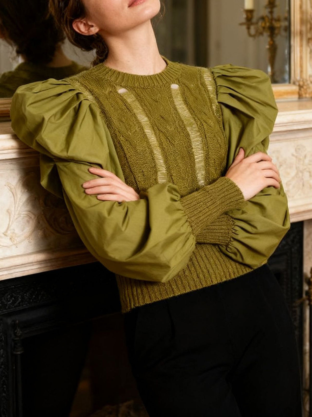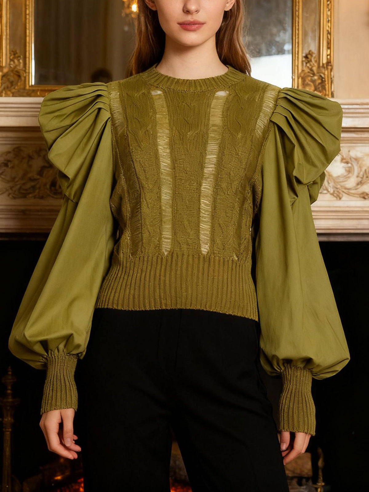 Vintage Round Neck Puff Sleeve Pullover Knit Sweater Classic pullover design featuring a timeless round neckline and distinctive puff sleeves that add vintage charm and dimension. Crafted from quality knit fabric, this sweater offers comfortable everyday wear with a sophisticated silhouette. The relaxed fit works well for layering or standalone styling. Perfect for wholesale buyers seeking versatile basics with retro appeal that resonate with customers seeking nostalgic fashion pieces. Ideal for boutiques and retailers targeting trend-conscious shoppers who appreciate vintage-inspired knitwear.